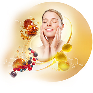 Peeling Complex is a balanced blend of alpha hydroxy acid (citric acid), polyhydroxy acid (gluconic acid), and dicarboxylic acid (succinic or amber acid) in a water-soluble liquid form, preservative-free/ self-preserving. This effective yet gentle acid trio provides broad-spectrum exfoliation to enhance skin texture, tone, and clarity.